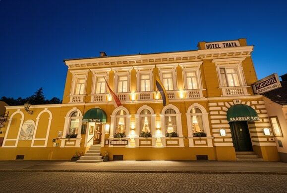 Das Stadthotel liegt inmitten der Stadt Raabs, direkt am Ufer der aufgestauten Thaya in einem noch unberührten Naturparadies im Waldviertel. Die einzigartige Lage verzaubert Sie, egal ob von Ihrer Terrasse oder vom Balkons aus, geniessen Sie die nAussicht auf die Burg Raabs und den Tayafluss. Wellnessmöglichkeit mit Sauna und Outdoor-Whirlpool, sowie nahe dem Vitalbad Raabs.