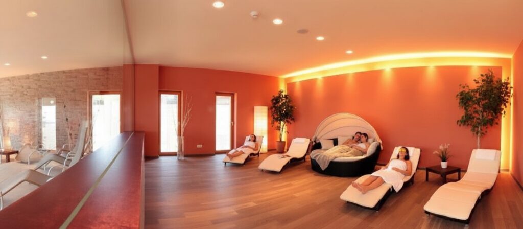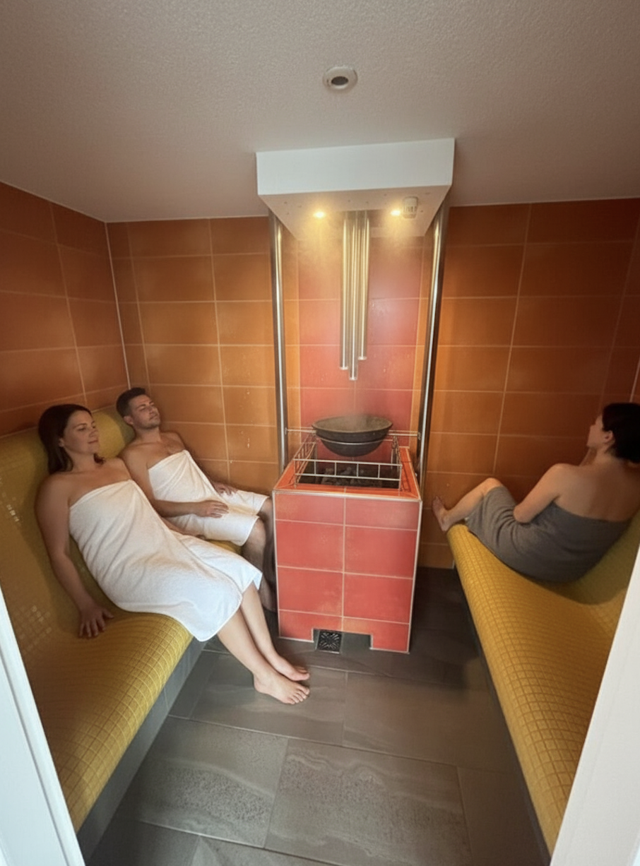 Unser Hotel bietet einen zweistöckigen Wellnessbereich mit Sauna, Dampfbad, Whirlpool sowie Ruhezonen. Somit können sich unsere Gäste nach einer ausgiebigen Wandertour aufwärmen und regenerieren.